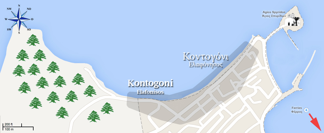 Το Κοντογόνι είναι η μοναδική περιοχή στην Ελαφόνησο όπου μπορείτε να έχετε όλες τις ανέσεις που προσφέρει το νησί. Καταλύματα γιά την διαμονή σας, μεγάλη παραλία με καθαρά και ρηχά νερά γιά το μπάνιο σας, ταβέρνες, εστιατόρια και μαγαζιά γιά το πρωινό, μεσημεριανό και δείπνο σας, καφετέριες γιά καφέ, ποτό και γλυκό, καταστήματα γιά τα δώρα, κοσμήματα και σουβενίρ σας, μίνι-μάρκετ γιά τα ψώνια σας, και ένα εκπληκτικό ηλιοβασίλεμα με θέα το κεδροδάσος.